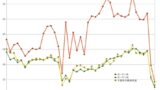 グラフを見て分かる通り、ほとんどの日で数字はプラスの領域にあります。そのうちの多くは、わずかなプラスです。マイナスの領域に入っているの日は少ないうえにマイナス幅も大きく、かなり異例の事態だということがわかります。